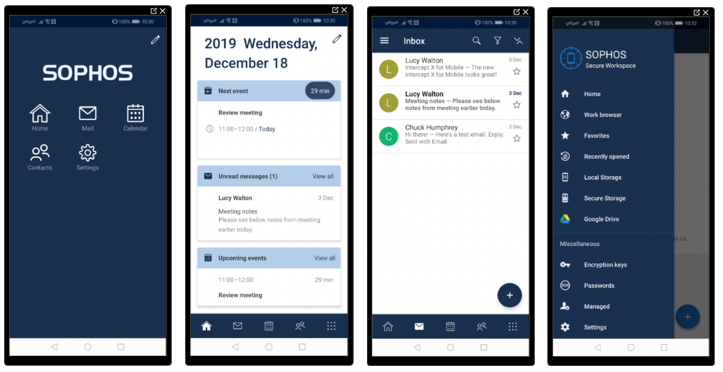 The container-only management capabilities in Sophos Mobile lets you control corporate content in the Sophos Secure Email and Sophos Secure Workspace apps without requiring management of the mobile device itself. This is ideal for bring your own device (BYOD) scenarios when you need to protect and control business email and data without intruding on users’ privacy.