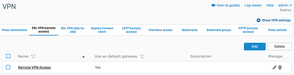 - Client Installer: The client installer is available by navigating to VPN > Sophos Connect Client on your XG Firewall. Sophos Connect documentation is available here.