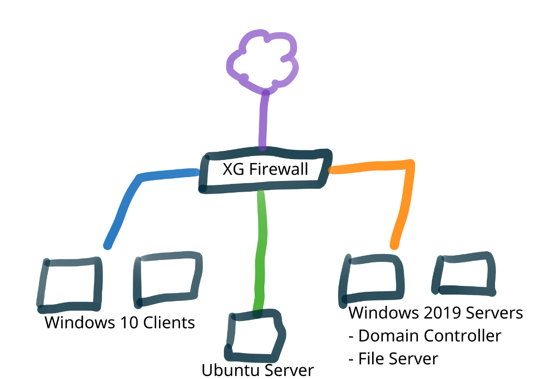 As you can see, I’ve got three separate networks that all terminate at the XG Firewall. This way I can also showcase the Synchronized Security features of the XG firewall. You don’t need two Windows servers if you are strapped for resources, but I would recommend having two Windows 10 clients in the same network so you can demonstrate the lateral movement prevention feature. And an Ubuntu machine, so you can easily show that EDR is not just Windows friendly.