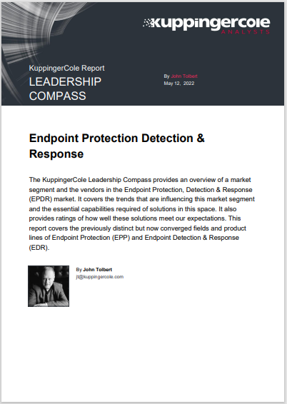 KuppingerCole’s 2022 Leadership Compass for Endpoint Protection, Detection, and Response (EPDR) evaluated solutions based on their ability to detect and prevent malware from executing on devices, and perform the full gamut of standard EDR functions, such as monitoring for indicators of compromise (IoCs), conducting investigations and threat hunts, and executing response and remediation actions.