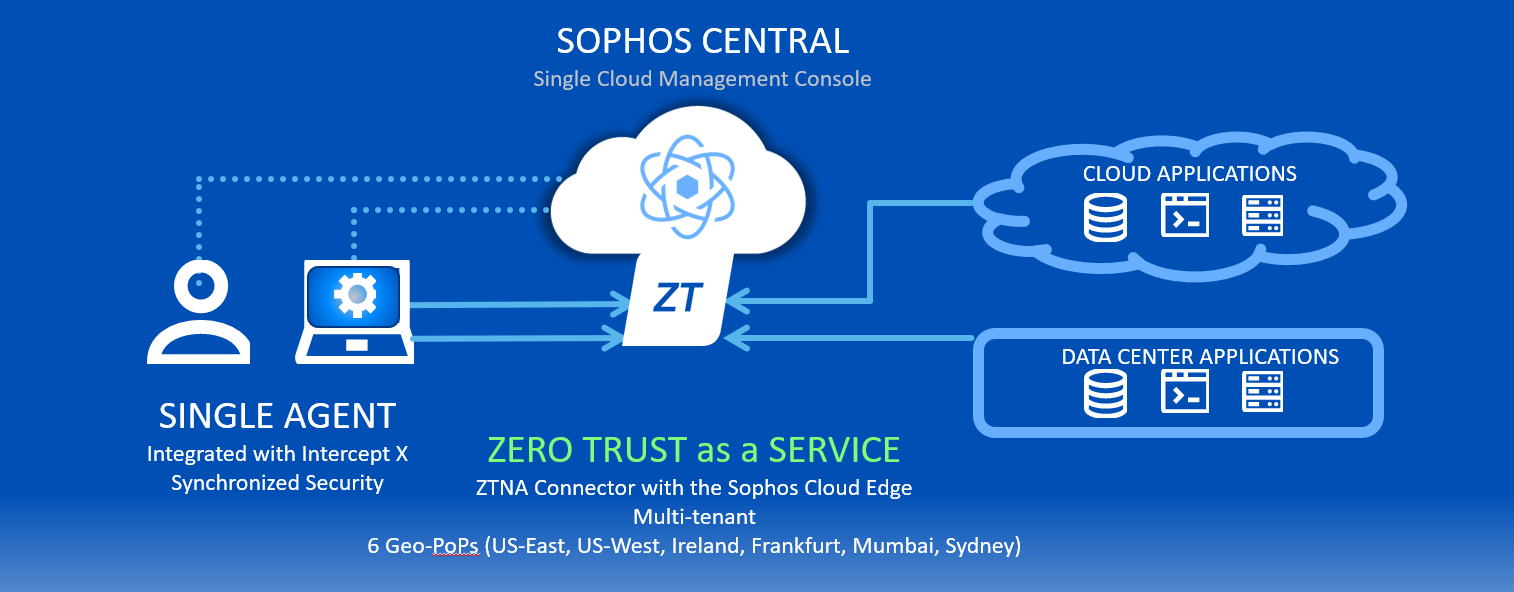 - ZTNA as a Service – with a Sophos Cloud data plane utilizing new lightweight ZTNA connectors that automatically connect to the Sophos Cloud on VMware, Hyper-V, or AWS platforms through regional Sophos cloud points of presence. This solution offers a more streamlined deployment without requiring any firewall configuration and makes the applications more invisible and secure as a result.