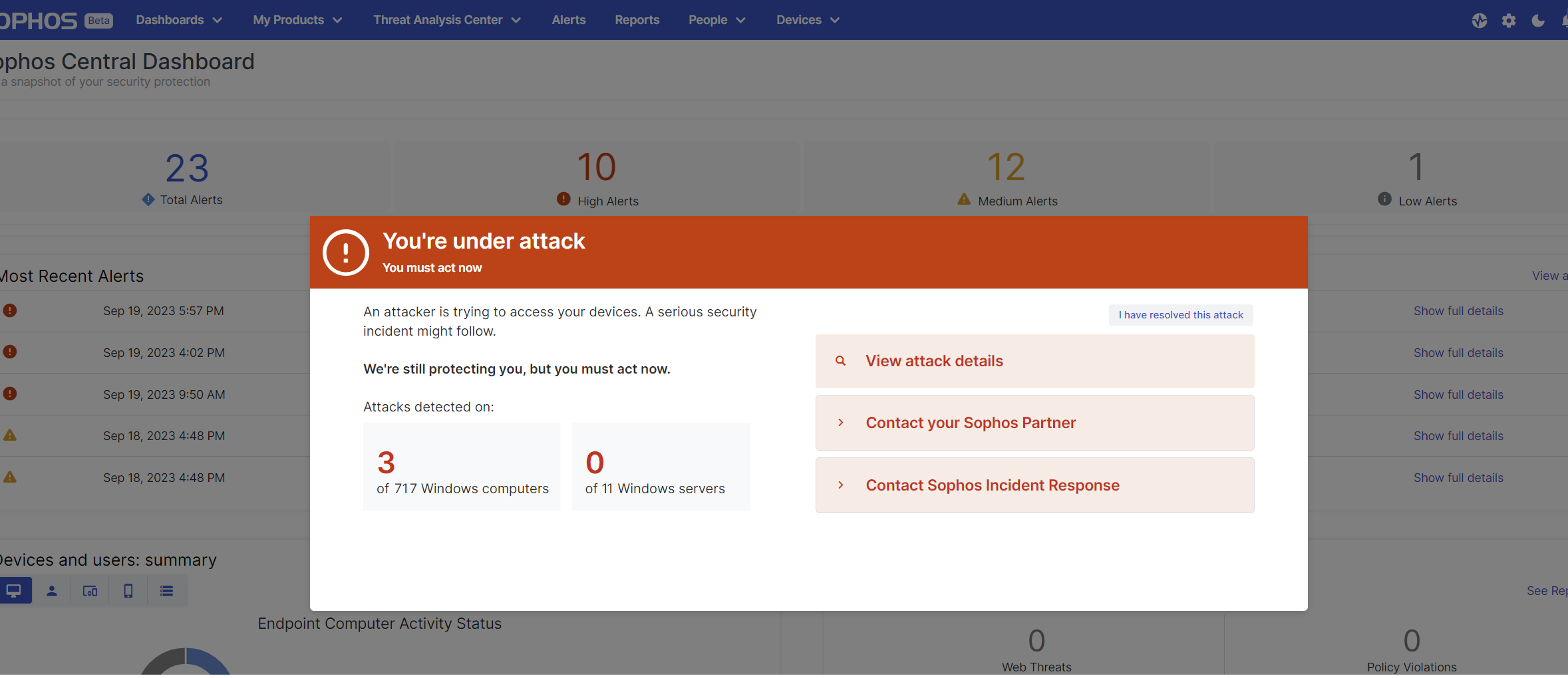 Critical Attack Warning is a new, innovative capability of Sophos Endpoint, available to all customers running Sophos Intercept X Advanced or Sophos XDR.