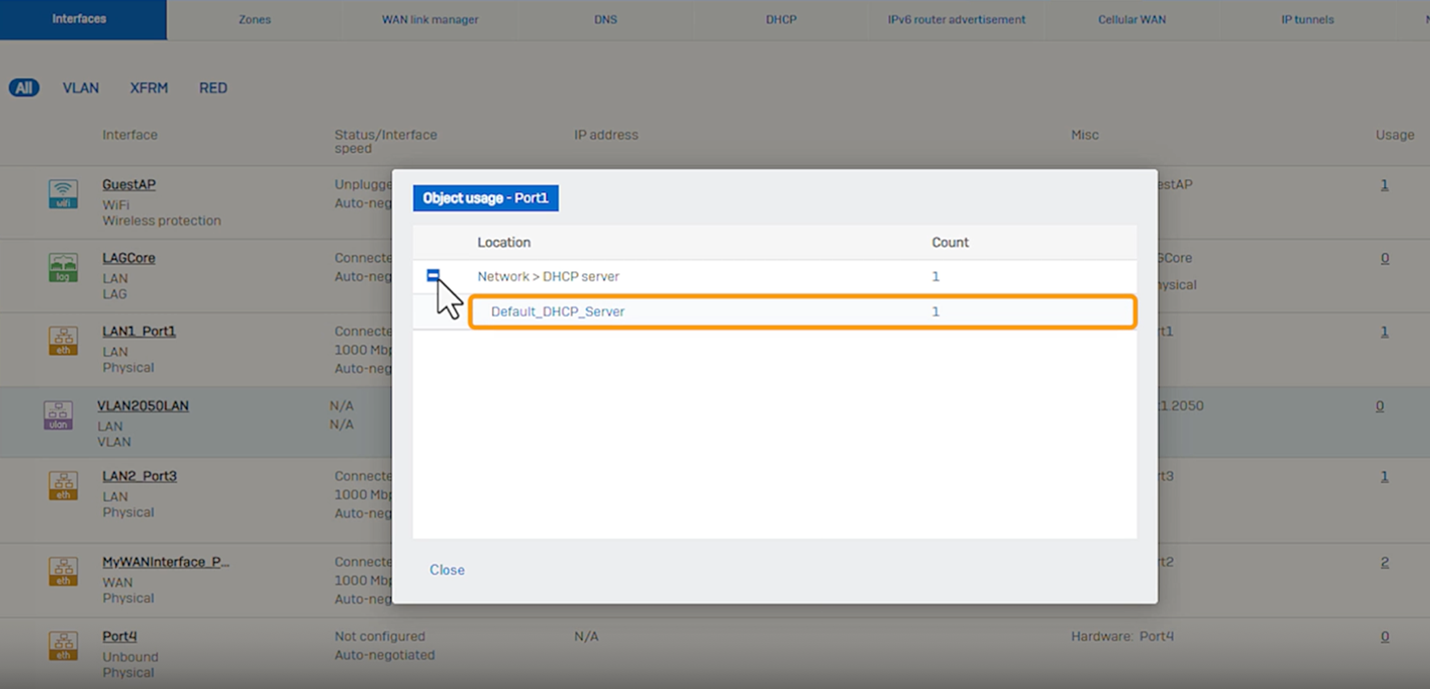 - New visibility into network object usage is now provided for interfaces, zones, gateways, and SD-WAN profiles. Simply click the new “usage” indicator on any of these screens for a quick view of the associated network objects. You can then drill down to view or edit the object details and settings in-place.