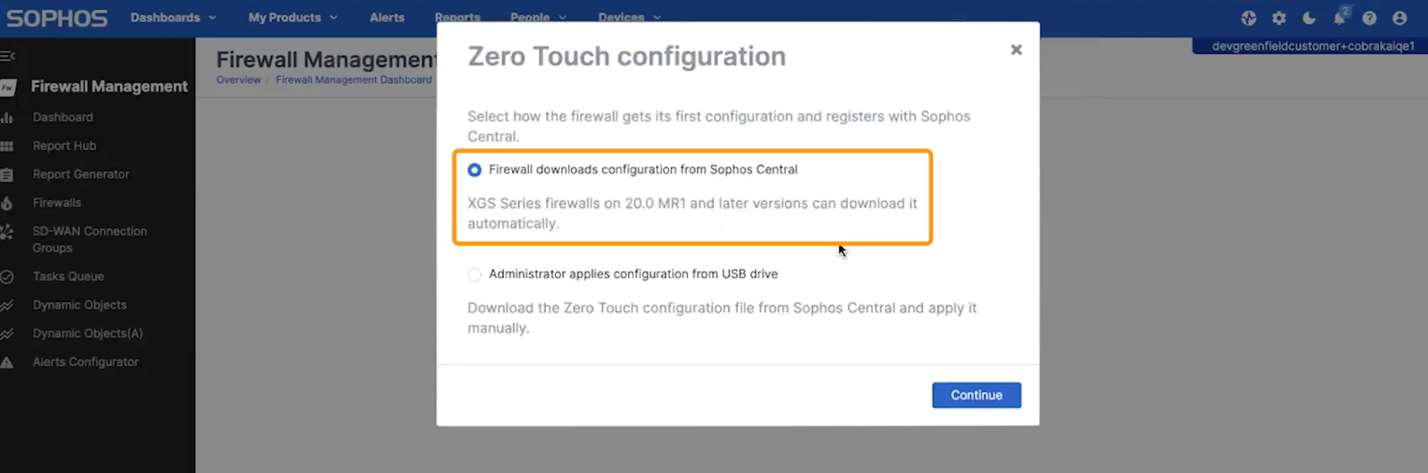 With this new zero-touch solution, a USB device is no longer required, making zero-touch deployments a lot simpler. The firewall will now automatically connect to Sophos Central to download configuration information. For scenarios where you prefer to use a USB device, it is still possible.