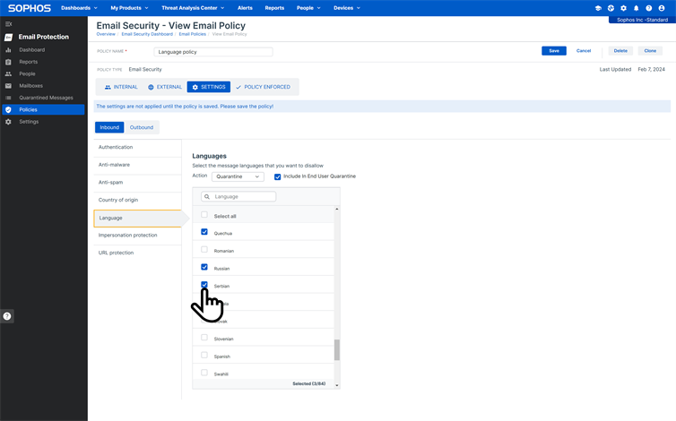 The new language detection feature in Sophos Email Advanced allows users to block messages in languages not relevant to their business. Combined with existing Country of Origin and Anti-Spam protection, it strengthens defenses against spam and unwanted messages, boosting user productivity. Learn more.
