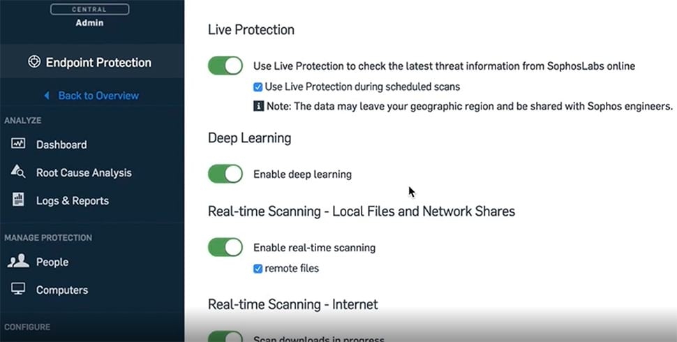 Sophos Workload Protection uses deep learning, an advanced form of machine learning that detects both known and unknown malware without relying on signatures.